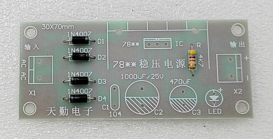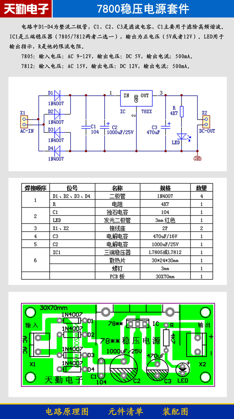 下面是7805稳压电源7812稳压电源套件焊接教程:
