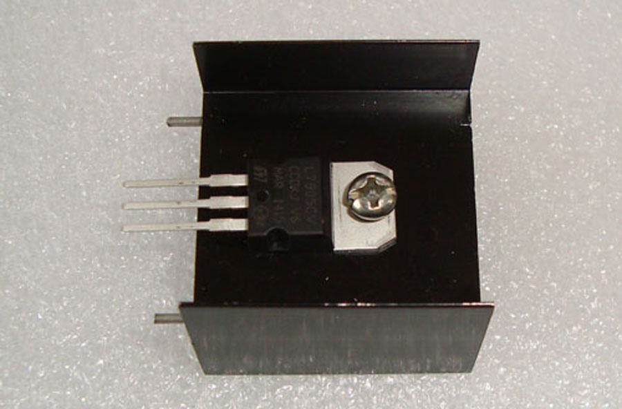 7、焊接稳压集成电路和散热片,焊好后拧紧螺丝